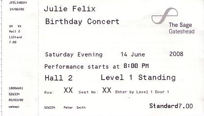 I too was at the Sage in Gateshead to witness this fine performance by legendery 60’s folk icon Julie felix as she celebrated this special birthday.