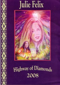It was obvious that many of the people in the audience knew each other and knew Julie; and that they had travelled from all over the UK to come to this concert. The stage was decked with balloons to celebrate the occasion; Julie came on stage dressed in a white trouser suit; she looked great! For her first set Julie focused on songs by her 60s contemporaries, some of which appear on her latest CD Highway of Diamonds. These included Bob Dylan’s A Hard Rain’s Gonna Fall, Buffy Sainte-Marie’s  Universal Soldier; and Leonard Cohen’s Hallelujah. Each of these songs was accompanied by a story of her memories of her meetings with the writer in the 60s.