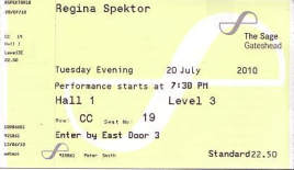 “Shes a bit like Tori Amos” Laura told me. So on that recomendation we (Laura, Christina, me) decided to go along and see Regina at the Sage Gateshead. Not really knowing much of her stuff (Samson was the only song I recognised) I find it difficult to comment on this one. Laura and Christina enjoyed it and Laura has promised to write a review for me to post here. I’ll post it as soon as she does so.
