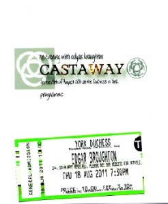 On Thursday night I saw a very different side to Edgar Broughton. The show had been billed as a special one-off performance entitled “Castaway”. Edgar had promised us, through his blog, that “it will be very different from what you might normally expect from me though it will include a lot of vintage material”.