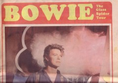 The day was wet, as I recall, and Big Country went down a storm, perhaps better than Bowie. Bowie’s setlist focussed on his more recent catalogue, and particularly his latest lp Never Let Me Down, ignoring the Ziggy era. The stage set was Ok, but somewhat silly, and personally I didn’t think it was as impressive as promised. At one point Bowie came down from the stage on a swing, and the spider just looked strange (but was it a forerunner of the recent U2 stage set up?). The programme for the gig (shown left) was obviously produced for the word tour, with lots of glossy photos of David, and nothing about the support acts; there was also an edition of the Sunderland Echo produced specially for the event (see below).