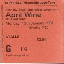 The April Wine tour you refer to was the Harder Faster Tour in 1980 – originally meant to be a Sammy Hagar tour with AW as main support – Sammy cancelled through illness and April Wine took over as headliners with Angel Witch and Sledgehammer supporting. I was at the Manchester Apollo gig on the 9th March – The two supports were excellent tho special memories of Sledgehammer with the Jimmy Page violin bow theatrics! April Wine had a tremendously strong melodic set and a three guitar line up in those days! They were at their peak with Harder Faster and the next album Nature of the Beast.