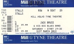 Jack Bruce & his Big Blues Band Newcastle Tyne Theatre March 31st 2012