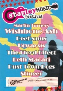 Up until a few years ago, Stanley hosted a very successful annual blues festival, that hosted acts such as Chicken Shack. Funding issues have meant that the festival has not run for a few years. However, this year local organisers have put together a music festival which ran today, on bank holiday Sunday. The headliners were Martin Turner’s Wishbone Ash, with support from several local acts. And all for £3! I arrived late in the afternoon and caught the majority of DeeExpus’ set. DeeExpus are a North East prog rock band, and are pretty good too. Their music is classic 70s prog, with flashes of Yes and Wishbone Ash. A local busker took to the stage during the changeover, and sang a few blues songs. However, he left in the huff, as his guitar mike wasn’t working, and he told us that he “had been sabotaged”. There was a little wait before Martin Turner took to the stage, and it started to rain quite heavily. The event was also running late, and quite a number of the crowd left before the headliner started. The rain had stopped by the time Martin Turner’s Wishbone Ash opened with “The King will come”.