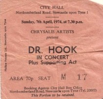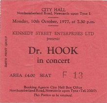 The first time that I saw Dr Hook, they were very different from the AOR band that they became in their later days. My mate Norm and I went to see them at Newcastle City Hall in 1974. We only knew one track Sylvia’s Mother, which is a great song, and were impressed by these crazy guys, who sang a mixture of southern rock and country, with great funny lyrics, many written by poet Shel Siverstein. Those guys had incredibly long hair at the time, were all stoned, crazy hippies, and front men Ray Sawyer and Dennis Locorriere had a great line in on-stage chat. Songs from that period were: Sylvia’s Mother, Cover of the Rolling Stone, Roland The Roadie And Gertrude The Groupie, and Ballad of Lucy Jordan (later covered by Marianne Faithful). They were great fun, and totally crazy. By 1977 when I saw them again at the City Hall, Dr Hook were riding on a wave of major success in the UK, having hit the chart with A Little Bit More and If Not You. Support came from Alfalpha. The show seemed a little toned down to me, with less crazy banter, and more straight songs. At this point the band were changing from a rock band to more a middle of the road rock/country act. They had even had their hair cut (which disappointed me)! Dr Hook went on to even greater success in the UK with a string of mega-hits. However, the memories I have are of those crazy long haired guys that I saw at the City Hall in 1974. A DVD exists of the band in those early days, when they were known as Dr Hook and the Medicine Show and shows the set as; Sylvia’s Mother; Marie Lavaux; Yodel; Cops ‘N Robbers; Carry Me, Carrie; Penicillin Penny; Roland The Roadie; Freakin’ At The Freaker’s Ball; The Cover Of The Rolling Stone.