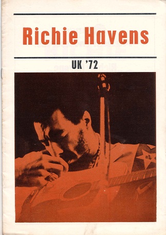 From the programme: “Richie Havens has a way of singing songs that makes people listen to them as if they’ve never heard them before. Taking as his material his own songs and the compositions of today’s greatest popular songwriters: Lennon and McCartney, Bob Dylan, Gordon Lightfoot…. – Richie gets right inside the meanings of them in a way that corresponds exactly to the way he and his audiences feel about the songs, the stories in them and the world around them. Whereas many musicians re-interpret songs by surrounding them with symphony orchestras, swamping them with the thousand strong choirs, Richie’s method is exactly the opposite.
