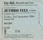 Jethro Tull returned to Newcastle City Hall in September 1984. The tour was to promote their new album Under Wraps. This new release introduced an 80s electronic/synth-pop sound, to a mixed reaction from fans and critics. The concert was, however, a big success, with quite a long set drawing from many of Tull’s albums (by 1984 they had released 15 albums!). Tull also played a couple of track from Ian Anderson’s solo album Walk Into Light, which was released in 1983.