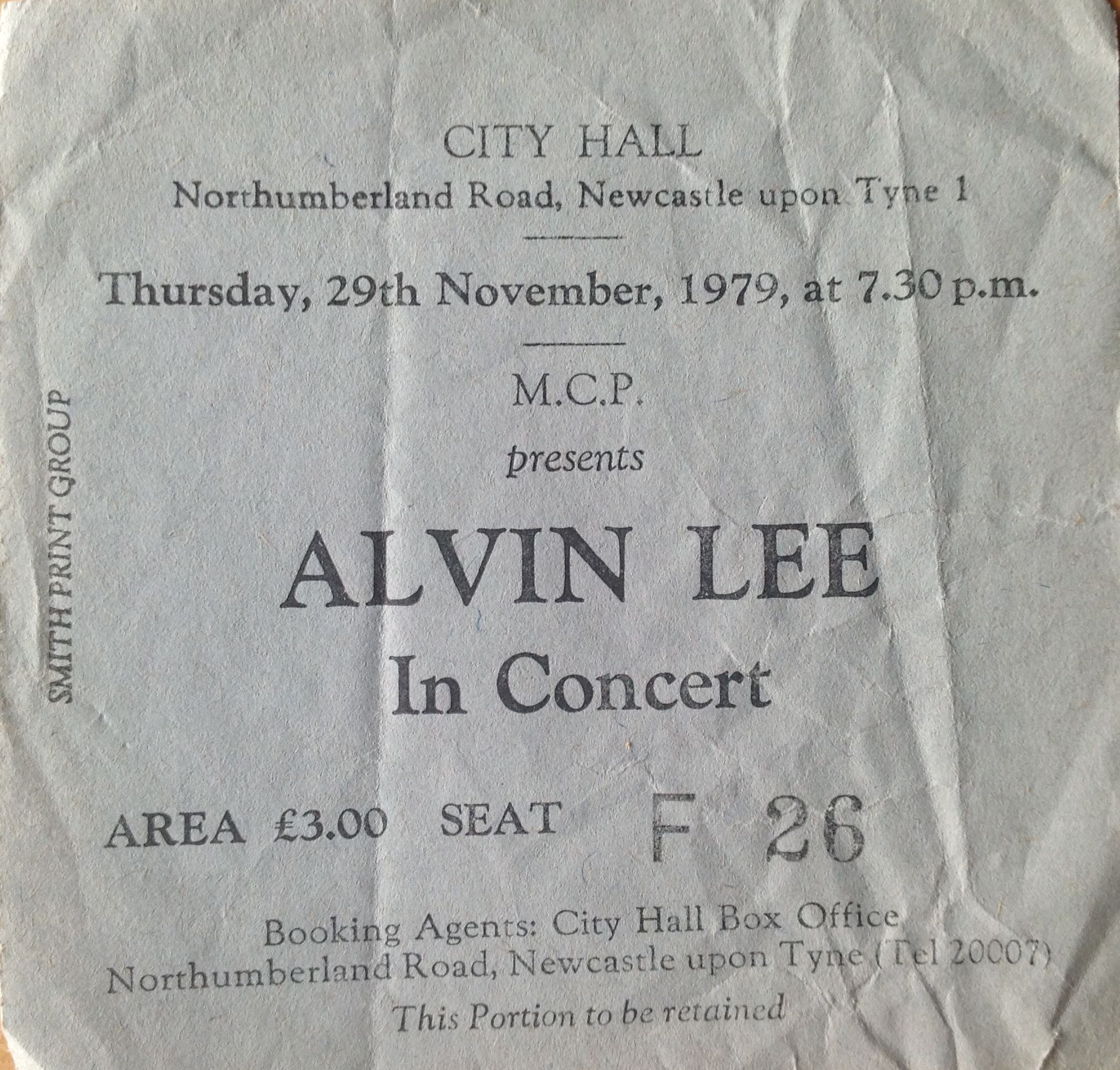My first engagement with the solo Alvin, was according to my tickets, in 1979 at Newcastle City Hall. Actually I am pretty sure that he was touring with a three piece band called Ten Years Later at the time, but the promoter obviously felt it better to list the gig as an Alvin Lee concert. The place was pretty empty as I recall, and Alvin was playing some new material, some rock n roll classics, and a few Ten Years After tunes. I think he played Good Morning Little Schoolgirl, Choo Choo Mama and Going Home. As always his guitar technique was excellent and his energy was boundless. The guy simply WAS rock n roll.