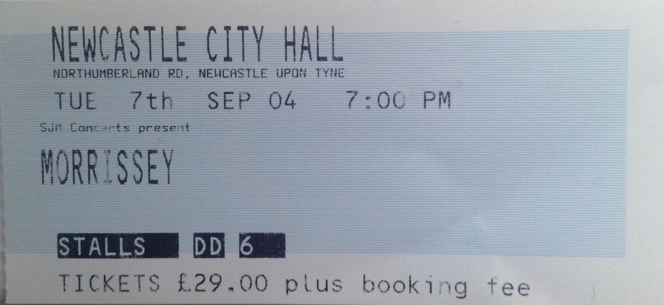 Setlist Newcastle City Hall 2004: How Soon Is Now?; First Of The Gang To Die; Don’t Make Fun Of Daddy’s Voice; Shakespeare’s Sister; November Spawned A Monster; Munich Air Disaster 1958; Let Me Kiss You; Subway Train; Everyday Is Like Sunday; I Like You; Now My Heart Is Full; You Know I Couldn’t Last; How Can Anyone Possibly Know How I Feel?; Rubber Ring; I Have Forgiven Jesus; I Know It’s Gonna Happen Someday; Irish Blood, English Heart. Encore: There Is A Light That Never Goes Out.