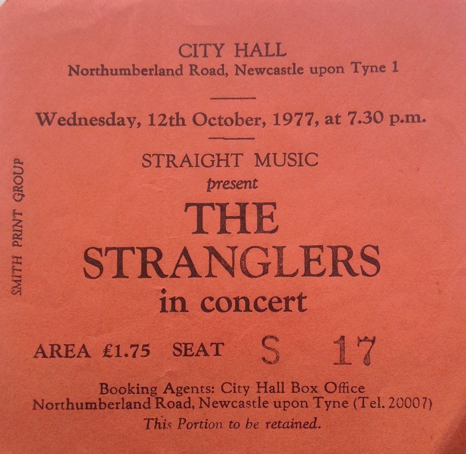 stranglers77tixI have already written about the first couple of times I saw the Stranglers in concert which was at gigs in early 1977 at Newcastle Poly and the City Hall. Well it wasn’t long before they were again, once more headlining at Newcastle City Hall. I think that support on this occasion came from local punk heroes Penetration (or maybe that was the City Hall gig earlier in the year); it is all, I am afraid, a bit of a blur…. I saw the Stranglers quite a few times over the next 7 or 8 years and I’ll blog a little about those gigs over the next few days. The Stranglers live was always guaranteed to be wild, with the crowd going absolutely mental, goaded on by Hugh Cornwell and Jean-Jacques Burnel. By late _DSC3097 [LR]1977 the Stranglers had just released their second album “No More Heroes” and were massively successful with punks and rock fans. These were one band which seemed to be able to bridge the two camps, and thus drew massive crowds to their concerts. They were in the UK singles charts 4 times in 1977, first with “Grip”/”London Lady”, which was a minor hit early in the year reaching No 44, then with “Peaches”/”Go Buddy Go”, which made No 8, “Something Better Change”/”Straighten Out” which reached No 9, and their final hit of 1977 “No More Heroes” which got to No 8.strangled1The October 1977 concert was a pretty wild gig with some trouble as I recall, Hugh and Jean-Jacques arguing with the bouncers (I think Jean-Jacques may have tried to kick one of them at one point), and Hugh encouraging the crowd to push their way past the bouncers and climb up on stage. By the end of the gig the stage was completely full of pogoing fans surrounding the band. All of this resulted in the Stranglers not being welcome in the City Hall for some time. Indeed the next few Stranglers tours missed out the North East completely, and it was 1980 before they returned to the region for a gig at Sunderland Mayfair, which I will write about tomorrow. I believe one of the band (either Jet Black or Jean-Jacques Burnel, depending upon which report you read) was arrested after the 1977 Newcastle gig. But then the band were used to _DSC3130b [CROP][LR]controversy at the time, not least because of their very non-PC songs and lyrics and their attitude towards the press. I would always buy a copy of “Strangled” magazine at each gig, as these were often on sale in place of a programme. This was a regular fanzine type mag; one of my early copies is pictured here. Based on setlists at the time the Stranglers set will have been something like this: No More Heroes; Ugly; Bring on the Nubiles; Dead Ringer; Sometimes; Dagenham Dave; Goodbye Toulouse; Hanging Around; Five Minutes; Bitching; Burning Up Time; I Feel Like a Wog; Straighten Out; Something Better Change. Encore: London Lady; Peaches; (Get A) Grip (On Yourself); Go Buddy Go