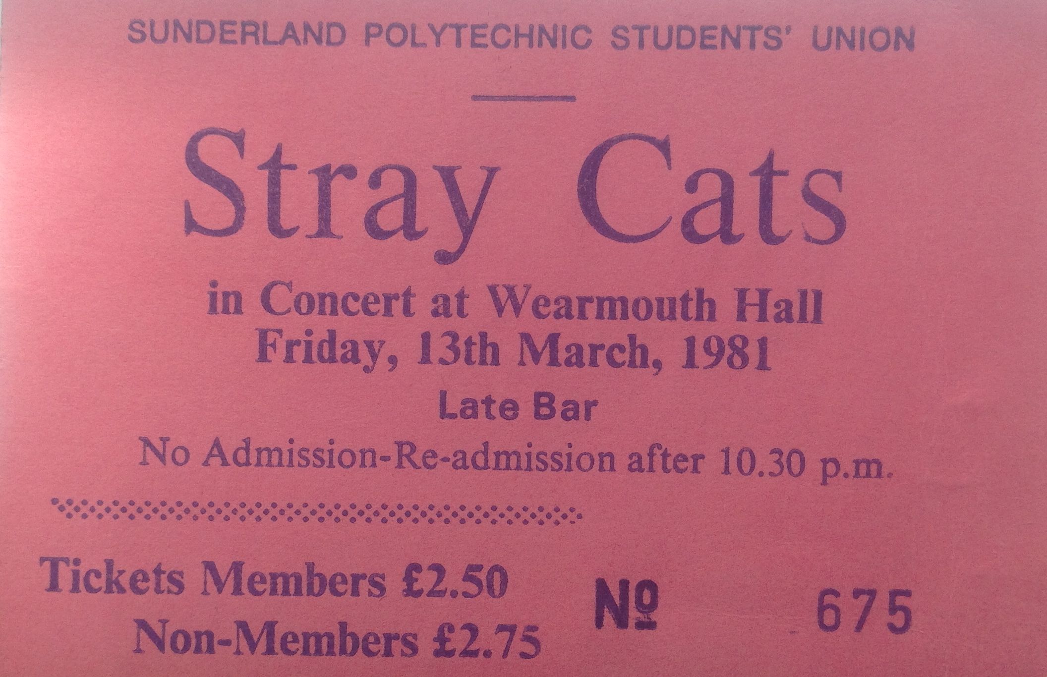 Firstly, the “Hells Angels” were not there and they were the local “Blue Angels” who were on the Guest-list (and in no way cause any alti cation), after the gig invited the Stray-Cats back for a night of beers. Secondly, the event was run by the students for the student, and the security was run by the students (this way they could blend in and not intimidate those attending). Since I was head of security I should know what I was talking about, and I got the team to slick their hair and wear leathers to give off a 50’s vibe. Best night I ever had in all the time I was studying at Sunderland and what a way to end my final year.