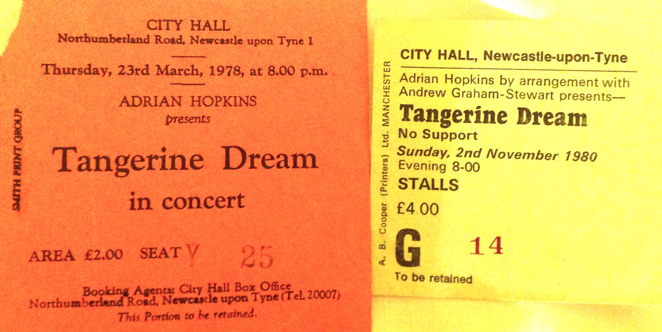 Tangerine Dream Newcastle City Hall 23rd March 1978 and 2nd November 1980