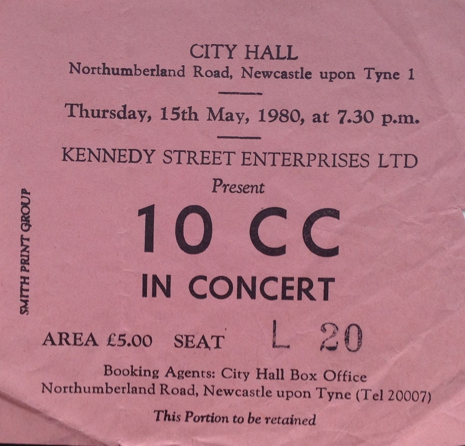 I saw 10cc on two further occasions. The first was at Newcastle City Hall on their 1978 tour. This was at the time of the “Bloody Tourists” album and the massive No. 1 single, the reggae-tinged “Dreadlock Holiday”. There was one change to the line-up with Duncan McKay (ex Cockney Rebel) replacing Tony O’Malley on keyboards. “Dreadlock Holiday” was 10cc’s last hit. In 1979 Eric Stewart was seriously injured in a car crash, which set the band back.