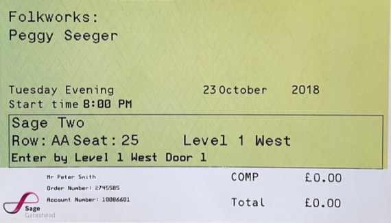 Peggy Seeger The Sage 22 October 2018 » peggy tix