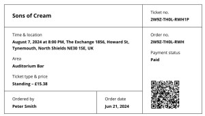 From the Exchange website: “The band Cream were one of the first supergroups, blending their beloved blues with powerful rock licks and rhythms. Now, nearly 60 years after the trio of Eric Clapton, Ginger Baker and Jack Bruce burst onto the scene, North Tyneside welcomes the new generation – Sons of Cream. Kofi Baker and Malcolm Bruce both have deep roots going back to the birth of the 60’s British Blues R&B Rock Explosion. Here they honour the incredible legacy of their fathers Ginger Baker and Jack Bruce alongside their bandmate Eric Clapton in an exciting show featuring the music of Cream and beyond through their project Sons of Cream.”