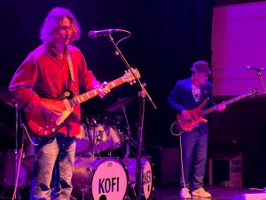 Back to today and The Exchange. The songs of the 60s resonated through the hall. Jackie, Norm, and I really enjoyed the concert. As the set list shows, the band chose an eclectic mixture of tracks from Cream’s back catalogue, including some I had forgotten, such as the wonderful “We’re Going Wrong”. They even threw in a magnificent attempt at “Toad”, the Ginger Baker drum solo, and a couple of Blind Faith songs which were no longer familiar to me. The performance was note perfect, including the understated opener “NSU” and the magnificent “White Room”. These guys are immersed in the music of their parents, who I am sure would approve. “Sunshine of your Love” Happy days are here again! Many thanks to Jackie for the photographs and to Chris for manipulating the site as usual. The last picture of the band is from the Exchange website