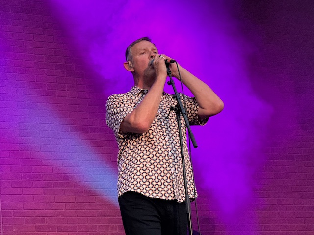 We arrived just as Inspiral Carpets took to the stage. I was pleasantly surprised by their performance. The singer Stephen Holt is a great front man with strong vocals, cool hair, and very cool mod/psychedelic clothes. The lineup has changed many times over the years and the current touring band is Graham Lambert lead guitarist (1980–1995, 2003–2016, 2022–present), Stephen Holt vocalist (1983–1989, 2011–2016, 2022–present), Clint Boon on keyboards and backing vocals (1987–1995, 2003–2016, 2022–present), Kev Clark drummer (2022–present) and Oscar Boon bassist (2023–present).