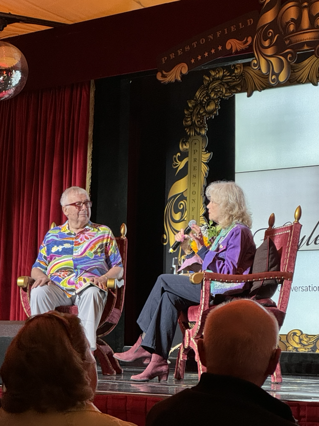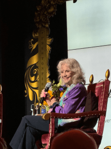 Very shortly we were ushered into the venue and took our seats close to the front. Soon Hayley Mills and Christopher Biggins took to the stage and had a lovely conversation about her times growing up in a family where very famous people were regular visitors: Laurence Olivier, Alec Guinness, Fred Astaire, and others. She talked about her early films and how she was then off to Hollywood and met none other than Walt Disney himself, starring in several of his films.