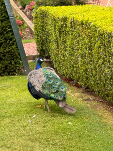 Only a couple of days after witnessing Taylor Swift in London, Jan and I took the train up to Edinburgh on a lovely Sunday morning. Once out of Waverley station, we took a taxi across to the event which was in a beautiful location, complete with a peacock in the garden and a waiter from the hotel (in which Hayley was staying) who came out and offered us drinks. Jan ordered a Pinot Grigio, and I ordered a glass of Jack Daniels with ice. The hotel waiter arrived with a tray and our drinks. Very congenial.