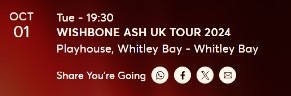 The Whitley Bay Playhouse website proclaims: “Following the outstanding response to their recent Live Dates Live tour – in which the band celebrated 50 years of their seminal multi-million selling live album – Wishbone Ash return with a show featuring songs from its follow-up… Live Dates 2. Experience the legendary band – whose iconic twin-guitar sound inspired the likes of Thin Lizzy, Judas Priest & Iron Maiden – performing a stellar set that also includes much-loved classics from a remarkable back catalogue spanning an astonishing 55 years! Definitely one not to be missed!” By now I have seen the band at least 20+ times maybe more and I still return to see them each year. I have blogged elsewhere about the two incarnations of the band; one led by Martin Turner and the other by Andy Powell. Suffice it to say, I will continue to see both versions of the band whenever I can.
