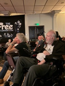 Then its “The Train Song” from The Band Play On, followed by “Be My Friend” which Terry dedicates to Koss’s girlfriend Sandhe Chard Givens who is in the audience tonight and also attended Fridays show. Then its probably my favorite Back Street Crawler track “It’s a Long Way Down to the Top” which is captured in all its glory on the Back Street Crawler Live in Croydon album from 1975. After “I’ll be Creepin”, it’s the fabulous “Molten Gold”. Often billed as “the best song Free never recorded”, the music and words were writen by Koss and he took it for his solo release , although an early version called “Burnin” does exist as a bonus track on a reissue of Free at Last. A classic number, masterfully delivered by the band.Terry then announces “the drugs are starting to kick in now – that’s Ibuprofen and Immodium” and we get “All the Girls Are Crazee” another Back Street Crawler song which Terry dedicates to “all the people who used to go to the Locarno and the Mayfair” which gets a big cheer from the crowd.