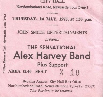 The last time I saw Alex Harvey in concert was at Newcastle City Hall in January 1980. Alex left SAHB in 1977, after their performance at the Reading Festival. He released a solo album, The Mafia Stole my Guitar, in 1979. This gig was announced at relatively short notice, with very little publicity. I went with Marie, unsure as to what to expect. The concert was very poorly attended with the crowd filling only the front section of the stalls. There can’t have been more than 200 people there. I read that at a gig at his home venue Glasgow Apollo the night before, they were giving tickers away in the street to try to fill the venue. Alex was dressed in a white jacket, black shirt and white tie; very much the gangster image. His band featured Matthew Cang on guitar, Simon Charterton on drums, Tommy Eyre (who had been a member of SAHB in the last days) on keyboards, Gordon Seller on bass and veteran sax and horns player Don Weller. The set was a mix of tracks from the new album and a few old favourites (Midnight Moses, Framed, Delilah I think) plus a couple of covers: Shaking All Over, and Just a Gigolo feature on the album, but I also recall Alex playing a couple of other older standards. As a performance it was ok, but I had the grandeur and madness of SAHB in my mind, and I’m afraid this didn’t compare to Alex’s past glories. A couple of years later Alex sadly passed away as a result of a heart attack after a gig in Belgium. He was 47. We will never see the like of Alex again. He was larger than life, crazy, without fear, and for a few short years SAHB were the best live act on the circuit, and were one of the bands who laid the foundations for the punk revolution which was to follow. Vambo Rool.