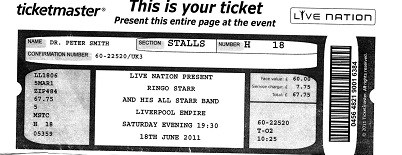 Ringo introduces Boys as “a song I used to do with Rory Storm and the Hurricanes and I’ve done ever since. I love the song.” They finish with Photograph, With a Little Help from my Friends (more mega singalongs) and a snippet from Give Peace a Chance. Then he’s gone; its 10.15pm and I’m back into the car, up the M6 and across to Scotch Corner (rainy and foggy); back home at 1.15am. A wonderful night that I won’t forget for a long time. Long live Ringo! Peace and Love.