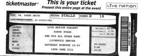 I’d been looking forward to this for some time. Its been 13 years since Ringo last toured the UK with his All Starr Band; I remember regretting not going to see them on that tour. Since then Laura and I saw Ringo at the Capital of Culture Opening concert; he sang three songs. So this was my first full scale Ringo concert experience. This visit of Ringo to Liverpool was quite controversial as a result of his comments on the Jonathan Ross show; where he in effect slagged off his home city. I’m sure Ringo wanted to make amends and saw this concert as one way of doing so.