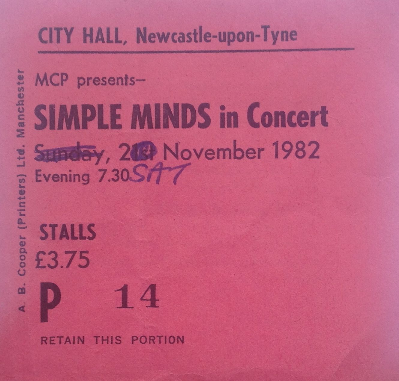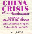 If you asked me, I would have said that I’d seen China Crisis a few times, however my ticket collection consist of only one stub, from a gig at Newcastle Mayfair, which probably took place in the early to mid 80s. I have vague memories of seeing them at Redcar Coatham Bowl as well, but that could well be a figment of my imagination. The band had some pretty pleasant tunes; I remember Wishful Thinking, King in a Catholic Style and Black Man Ray, in particular. In my head China Crisis sit in the same box as Aztec Camera and Talk Talk. Not sure what strange logic makes me place the three bands together, but there we go. Of the three bands, Talk Talk were, in my view the strongest, and were just great live; I will report on them another day. I’ve just played Black Man Ray on youtube to remind myself of China Crisis. Good song.