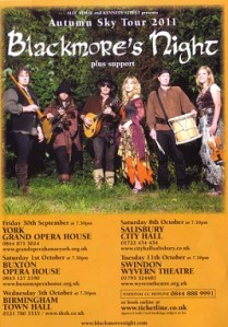 I saw the classic Deep Purple Mark 2 lineup several times in the 70s, and if you’d have told me that 30 years later I would be going to see Richie Blackmore dressed in medieval gear, and playing elizabethan folk music on a lute, I would have thought you were crazy. But so it is; its curious how things change and develop over time. I first saw Blackmore’s night at the Newcastle Tyne Opera House in 2005, with my son David. We went largely out of curiosity, but came away having really enjoyed the experience. If you go with an open mind you will enjoy the show, I’m sure. If you go expecting to see the old Deep Purple Ritchie, you are likely to be disappointed. Blackmore’s Night is a completely different experience to seeing Deep Purple. Heavy rock it is not, but great music it is.