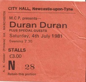 I first came across Duran Duran when they supported Hazel O’Connor on her Breaking Glass tour at Newcastle City Hall. It was clear then that this was a band with a strong image and some great pop songs with catchy hooks, which transcended the New Romantic tag which they had. A year later they were back with their own headlining tour. I remember being surprised at the time at how quickly this new band had risen to headline status. They had released three singles in quick succession: Planet Earth, Careless Memories and Girls of Film, but I still doubted that they could fill the City Hall. But the gig was full; Duran Duran had already started to build their own strong following.