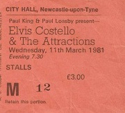 I had seen Elvis C a few weeks earlier at Middlesbrough Town Hall, again on the Stiff tour, which also featured (I think) Ian Drury, Wreckless Eric, Nick Lowe and others. I think it must have been around November 5th and Guy Fawkes night, as I recall we were waiting outside the venue and some young kids had their “guy” against the wall and asked Elvis “Penny for the Guy?” as he passed them on his way into the Town Hall. He threw them a few coppers. “That’s Elvis Costello” I told my mates. At the time I wondered how a young guy dared call himself “Elvis”. I was soon to find out. A few months later he was in the charts with “Watching the Detectives”. A few years ago, but I saw him in my hometown of Sunderland, at the Empire. I’ve seen him many times in between. And yet after all the years, I still remember those early, rocking, concert performances by an angry young Elvis who spat out the lyrics.
