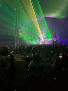Getting back to our taxi was something of an adventure. The ground had obviously been muddy earlier in the weekend and Jan and I bounced our way over bumpy terrain and rocks which made the journey across the fields somewhat scary. We even had two strong guys holding each side of my wheelchair to make sure I didn’t topple over! Nonetheless, nothing could spoil a great event with another opportunity to see one of my all-time favourite bands. Roll on Kin 2025.