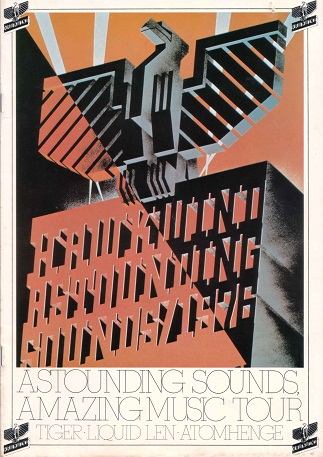 It was 1976 and Hawkwind were back on the road with a new album and a new show. Robert Calvert had rejoined the fold, after guesting at Reading in 1975, but Stacia had decided to give up dancing and take up family life. Paul Rudolph of the Pink Fairies was new on bass guitar duties, replacing Lemmy who had been sacked from the band. Paul himself wasn’t to be in the band for long. The new album was Astounding Sounds, Amazing Music and the stand out track was Reefer Madness. I didn’t realise at the time that this song title came from an old anti-drugs film which I have seen quite recently on TV. The tour concept was Atomhenge which was a futuristic version of Stonehenge and shrouded the stage with a myriad of lights. “Throughout the show, thousands of light bulbs within the glass–fibre structure sprang to life, giving an eerie, almost menacing atmosphere onstage.”