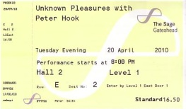 The evening was a chance to hear Peter Hook talk about his life with Joy Division, New Order and the Hacienca club. The stage was set out with several of Hookie’s bass guitars and various memorabilia from the bands and the Hacienda. Howard Marks came on and introduced Peter Hook who strapped on his bass and treated us to a couple of instrumentals. Then it was into the Question and Answer session with Howard Marks asking questions on behalf of the audience (we had all been invited to write questions on a card before the show). Some interesting insights into the early days of two great bands and “how not to run a club”.