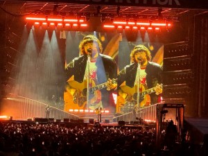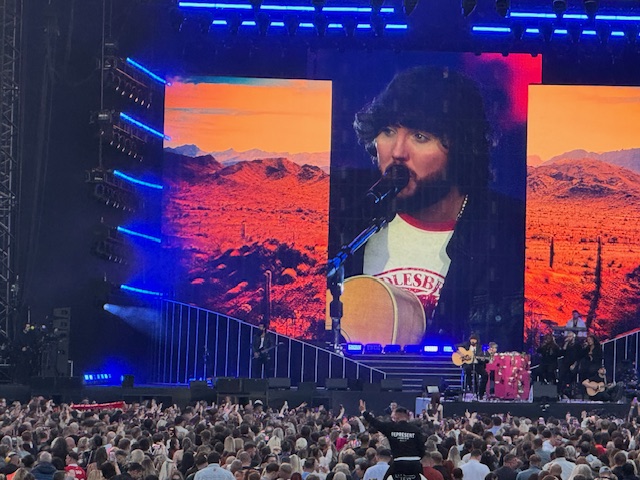 On the day of the show, Jan, Harvey, and I ventured south to the ‘Boro to see how James would fare in the stadium concert. Just as we arrived at the ground, we could hear McFly finishing their set. I wrote just yesterday about how I saw many acts perform at the Olympic Torch Concert in The Mall, London during 2008. McFly were one of those performing on the day. So, it has been many years since I saw them perform, and I didn’t really see them this time (although I could hear a couple of familiar hit songs). The crowd gave them a great cheer as they finished their warmup performance.