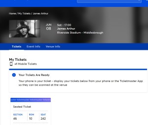 “The news comes months after James announced he would be releasing his fifth studio album, Bitter Sweet Love, which is set to be released on January 26 [which I saw him preview at the Boiler Shop at the time of its release] with multiple dates including UK arenas. The 35-year-old Boro fan said playing at his home stadium had always been a ‘pipe dream’ and he was ‘really honoured’ to be playing on home turf.”