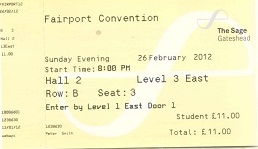 Fairport Convention Sage Gateshead February 26th 2012. Support Act: Kieran Goss
