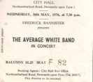 Bands like Average White Band and Kokomo represent a particular time and period to me; in fact I’d almost forgotten them. I’m finding the exercise of working through my programme and ticket collection very interesting. Its bringing back old memories, and reminding me of bands and times that I had forgotten. Its taking longer than I thought, however; I’m working through them, at least in part, alphabetically, and I haven’t yet completed the letter A…..