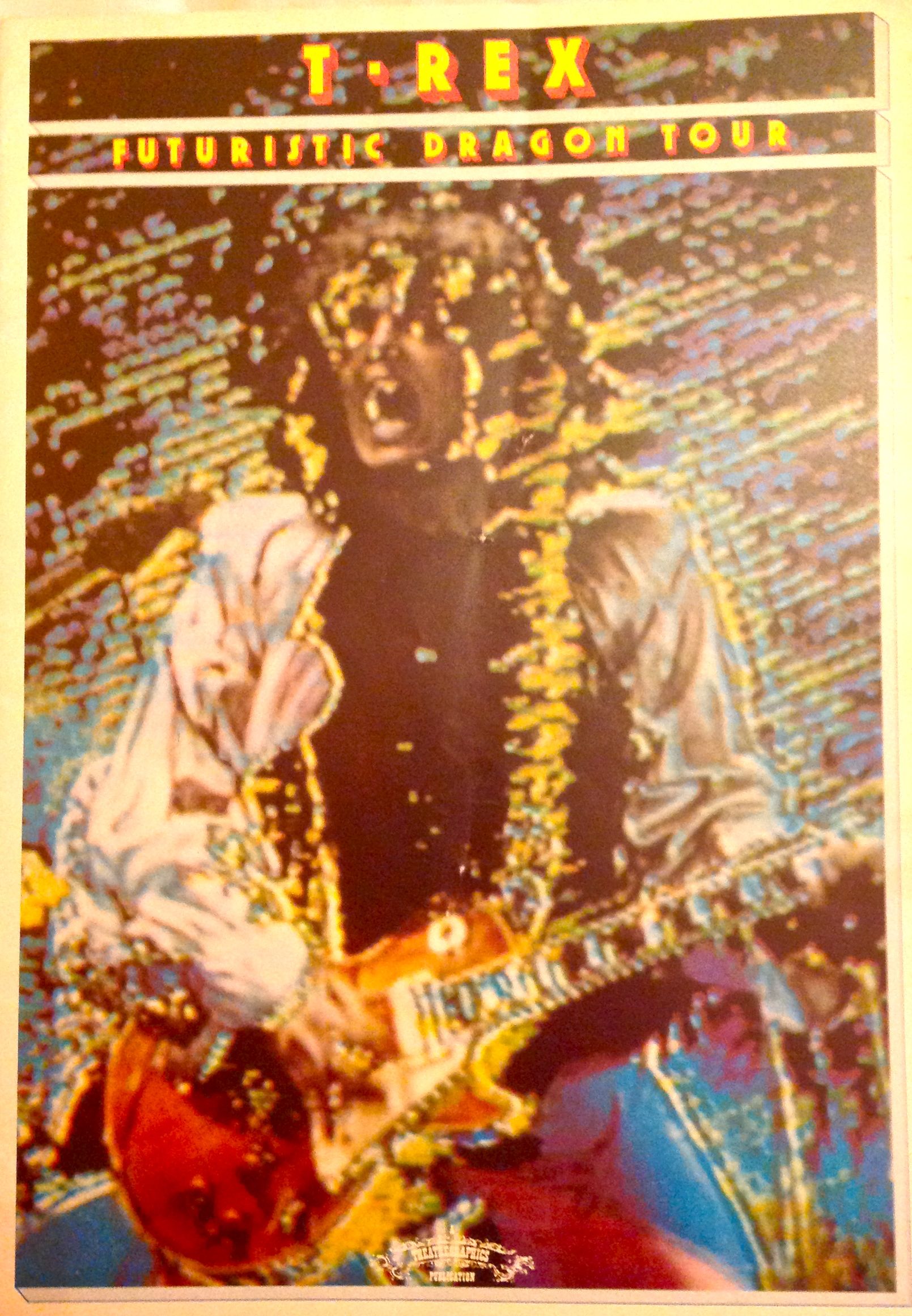 Two years on and T Rex were touring again, this time to promote their new album “Futuristic Dragon”. The truth was that the T Rex star was waning, and they weren’t hitting the charts in the way that they used to. But in Marc’s head he was, of course, as big a star as ever, and if you read the programme you would believe that the band were as popular as ever: “Marc Bolan is back in Britain and set to lead T Rex on their first major UK tour since 1973….Today when Marc Bolan declares he is a ‘rock and roll phenomenon’ it is no wild exaggeration… he has become a legend to millions of fanatically enthusiastic young people. It was with T Rex that Marc brought back the screamage excitement which had not been seen since the halycon days of the Beatles….With a little help from his lady Gloria Jones (vocals and keyboards), Steve Curry (bass), Dave Lutton (drums), Tyrone Scott and Dino Dines (both on keyboards) the ‘little bopper’ is about to put the bounce back into rock. Look out!” Usual Bolan under-statement 🙂