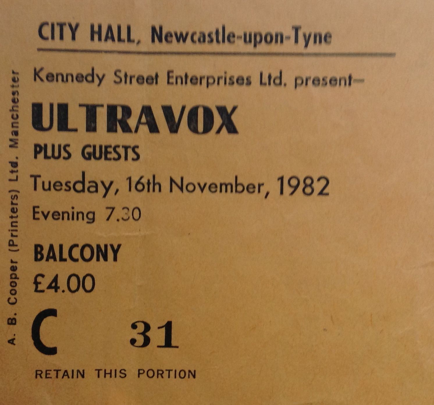 Ultravox released their sixth album “Quartet” (their third with Midge Ure) in 1982 and toured around the world to promote it on the Monument Tour. By now they had followed the success of “Vienna” with a series of Top 20 UK singles: “All Stood Still”, “The Thin Wall”, “The Voice”, “Reap the Wild Wind” and “Hymn”. The band were very popular, so much so that this time they sold out two nights at the City Hall. I attended the second night. The Monument Tour was recorded for posterity in the form of a video and an lp “Monument” which was recorded at London’s Hammersmith Odeon, and released in 1983.
