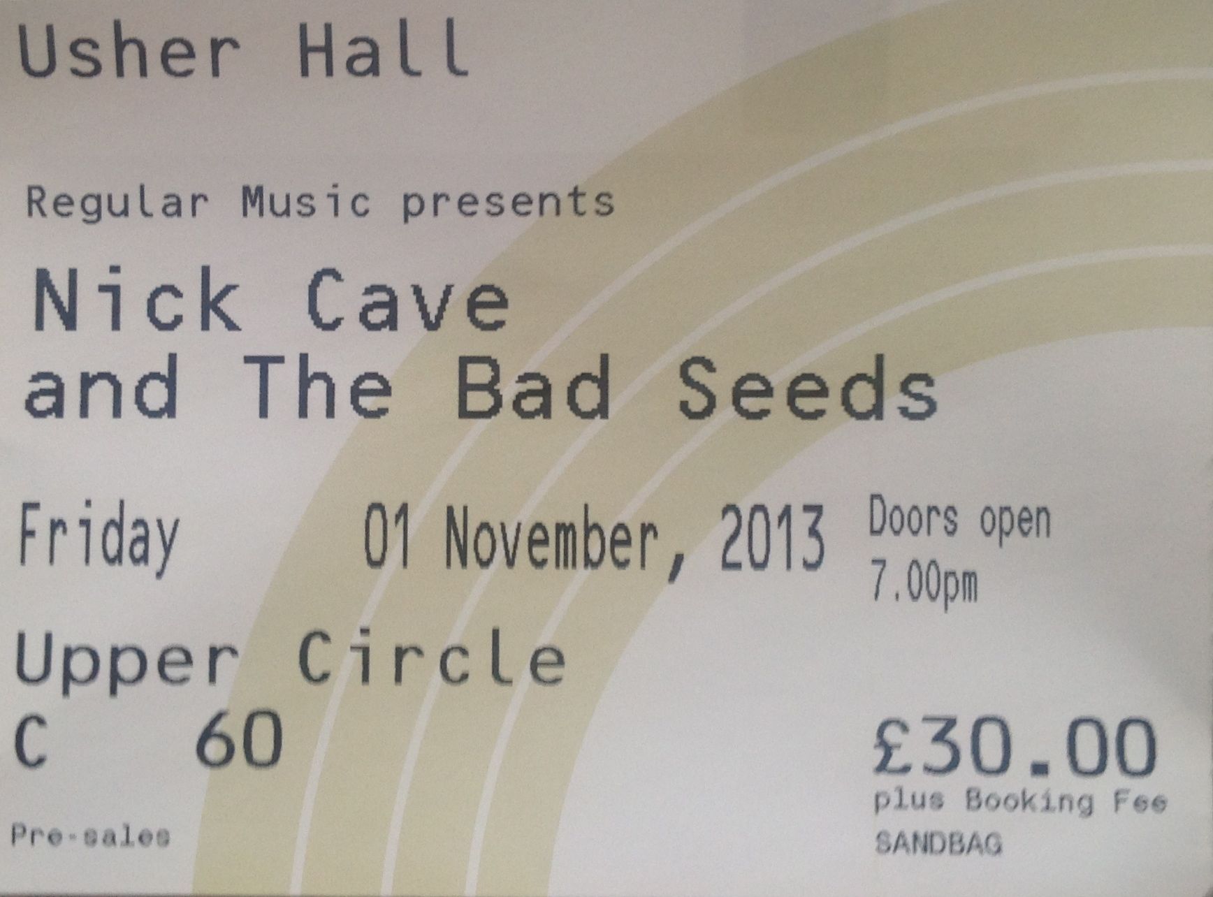 Tickets for this gig sold quickly; Nick Cave has a very committed hard core following. This is the only time I’ve seen him in concert. I have vague memories of The Birthday Party supporting Bauhaus at Newcastle University in the early 80s, but can’t be certain I attended that gig. David and I went to the Sage gig, David being more familiar with Cave’s material than I was. This was a solo concert, with Nick on piano, and Bad Seeds Warren Ellis (violin), Martyn Casey (bass) and Jim Sclavunos (drums). It was one of the first gigs I attended at the Sage Gateshead, which had only been open for a couple of months. Nick’s songs are dark and intense, and the set drew songs from throughout his career, and a selection from the Abattoir Blues/The Lyre of Orpheus album, which had been released around that time. Nick is a pretty cool guy (great moustache) and had some interesting banter with the crowd between songs. An excellent gig by a unique guy. Laura is pretty jealous and has Nick Cave high on her lists of concert must-sees. I bought her a signed copy of his book “The Death of Bunny Munro” which takes pride of place in her flat, and I have promised to take her to see him next time he comes to the North of England. Setlist: West Country Girl; Abattoir Blues; Red Right Hand; Hallelujah; Cannibals Hymn; God Is In the House; The Ship Song; Babe You Turn Me On; Christina The Astonishing; Henry Lee; The Mercy Seat; Hiding All Away; Messiah Ward; Rock Of Gibralter; Jack The Ripper. Encore 1: The Lyre Of Orpheus; Lucy; Stagger Lee. Encore 2: The Singer