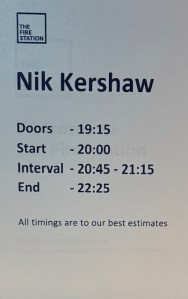 The Fire Station website announced this show: ”Step back in time to 1984 as Nik and the band hit the road celebrating 40 years since the release of Human Racing and The Riddle with both epic albums being played in their entirety! Nik Kershaw exploded onto the UK pop scene in 1984 as a solo artist. A string of global hit singles – including ‘Wouldn’t it Be Good’, ‘The Riddle’ and his biggest hit, ‘I Won’t Let the Sun Go Down on Me’ – helped to propel him to 62 weeks on the UK Singles Chart through 1984 and 1985 – beating every other solo artist, together with performing at Live Aid.”