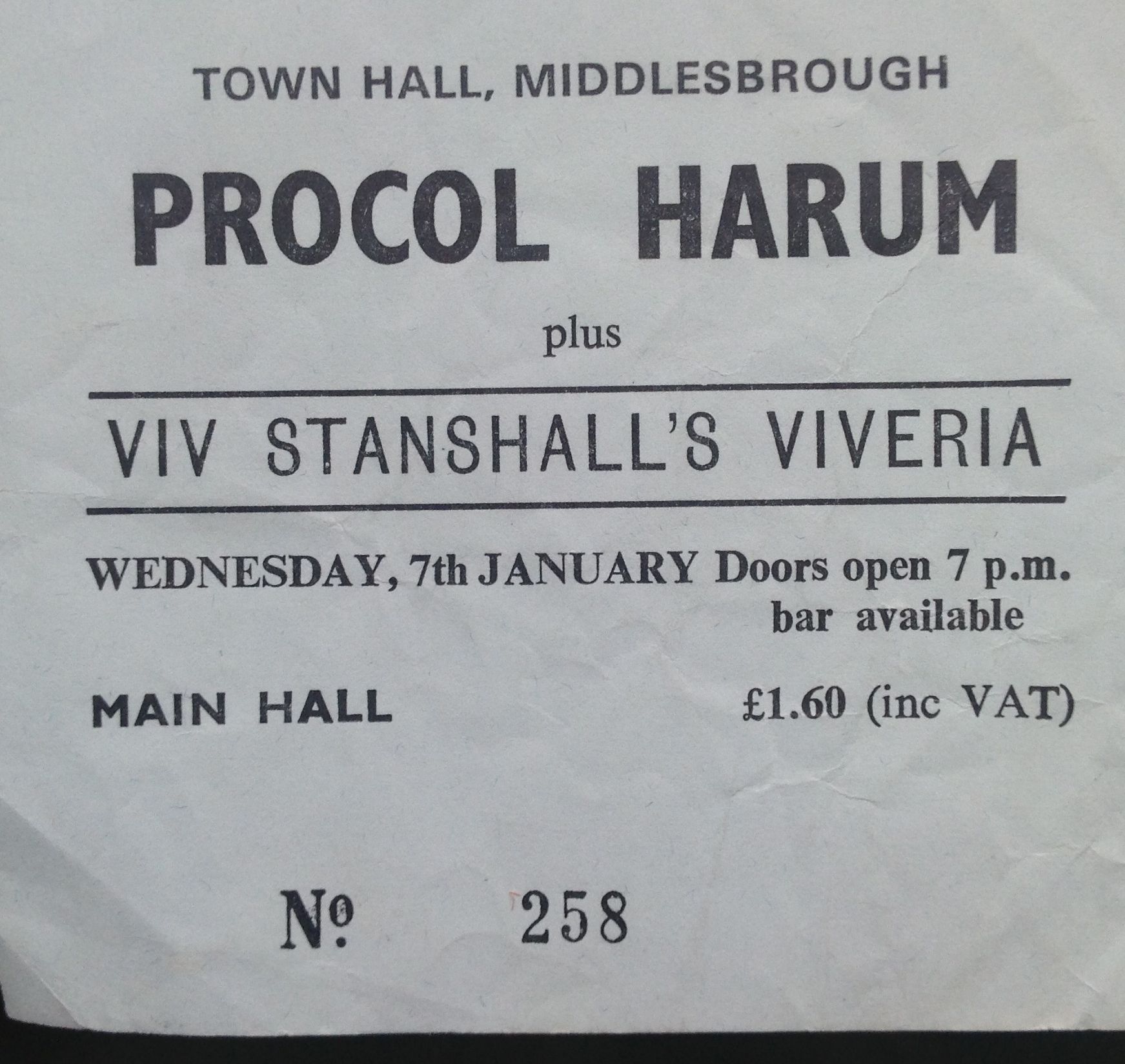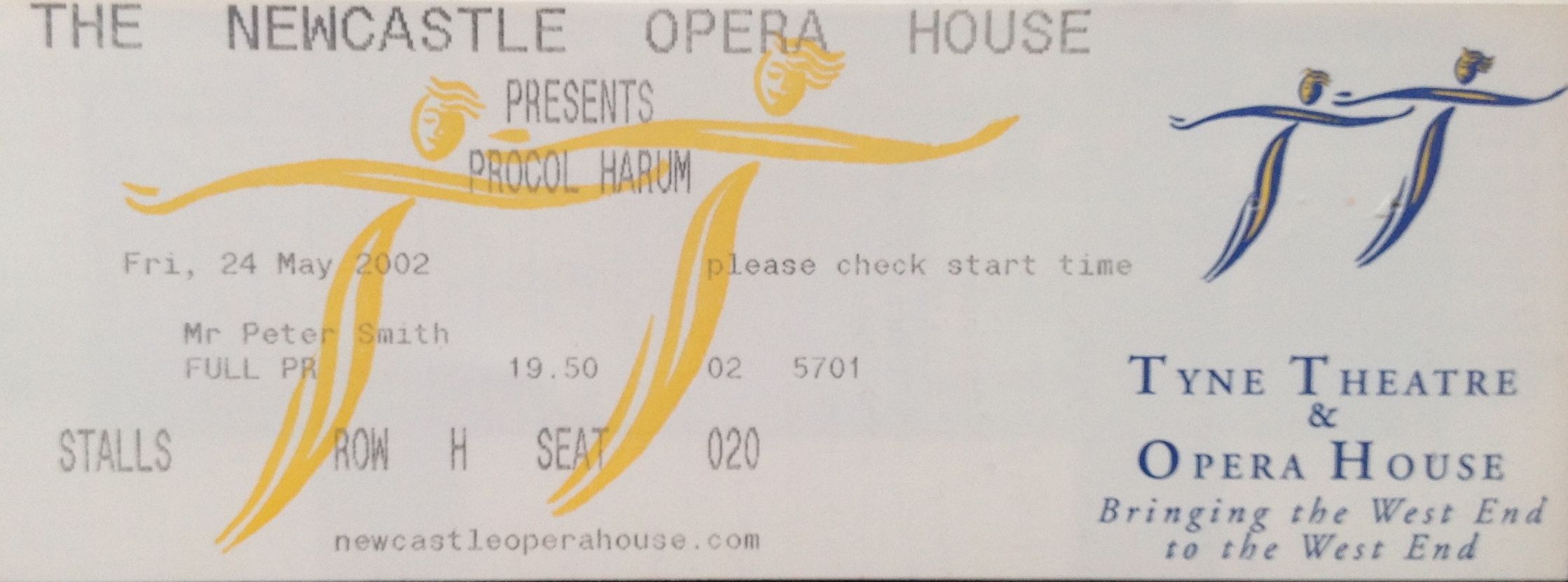 The Middlesbrough gig was the last time I saw Procol in concert, although I had a ticket for a gig at the Tyne Theatre in Newcastle in 2002, which was sadly cancelled. I still have my ticket which is pictured here. I hope I can get to see them one more time, and await their next performance in the UK. Thanks to John for his scan of the poster from the 1973 Newcastle City Hall concert with Hemlock support.