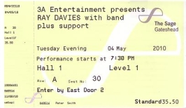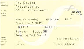 Postcript. I have added below scans of earlier gigs where we have seen Ray Davies. These include three shows at the The Tyne Theatre and another show at the Sage. All these shows were great fun, with quite similar setlists.
