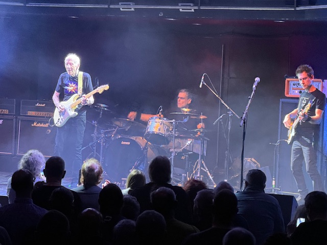 Support came from the Connolly Hayes Trio, a blues rock outfit. Sadly, we arrived just a little too late to catch their performance. We had time for a quick drink in the bar before entering a sold-out crowd ready to witness the legendary guitarist. The last time I saw Robin, in Stockton, he was taking on much of the singing himself This time he returned to the familiar three-piece line – up as it was in the 70s, with the bass player taking singing duties. Robin Trower remains an outstanding guitarist who can squeeze notes through his Stratocaster like no one else. His singer/bassist has a great voice and does justice to the old songs. This formation is much more authentic than the band I witnessed in Stockton, allowing Robin to focus on his guitar playing.