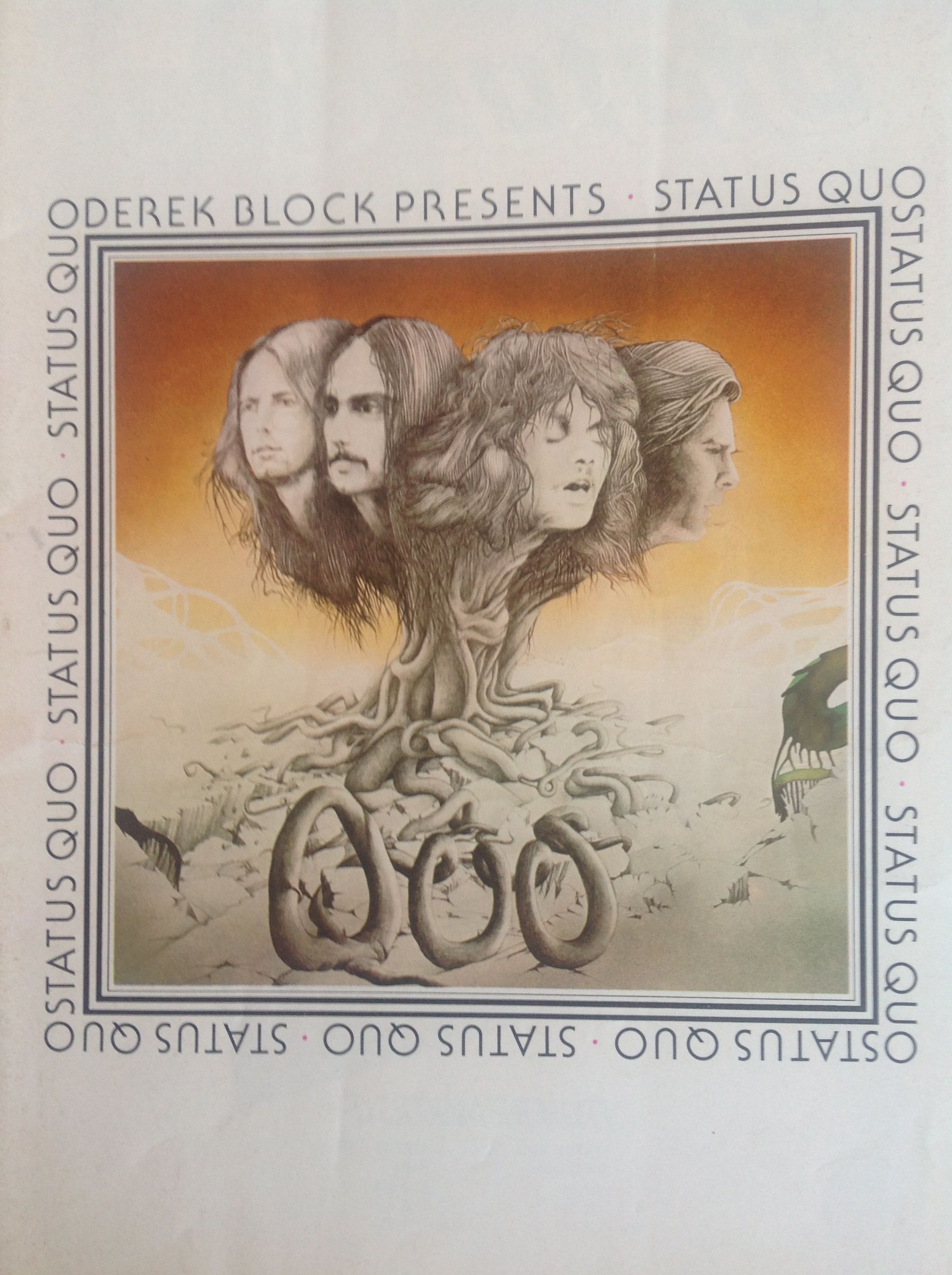 Quo-woh-oh-oh-oh….Some time in the mid-70s the Quo rituals started. A few drinks in the City Tavern and then in the City Hall bar, catch some of the support act (always guaranteed to be good, so had to watch them), and then up to our seats, the lights would go down and then our chant would start…”Quo-woh-oh-oh-oh….” The Quo intro drone would play and then they would run on stage, Alan at the front for the first song, which we knew would be “Juniors Wailing”.