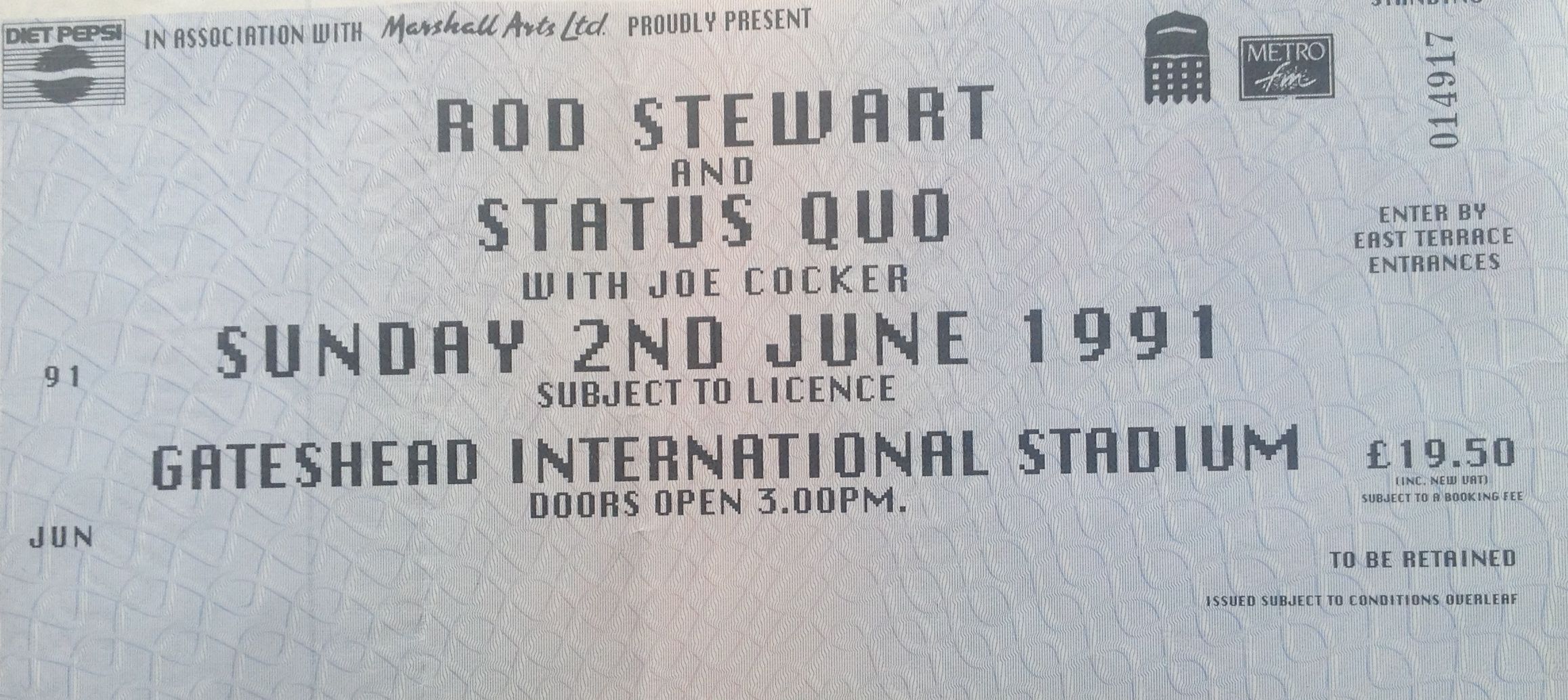 Rod Stewart, Status Quo & Joe Cocker Gateshead Stadium 2nd June 1991