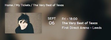 The story continues on the Leeds Arena website information for the event: “Who are they? They are Texas, and they make hits. Following a triumphant, stand out performance on the Pyramid Stage at Glastonbury……. Known for their enthralling, high-energy shows, the…. band [will] play a set of classic hits from their recently released The Very Best Of 1989 – 2023.)”