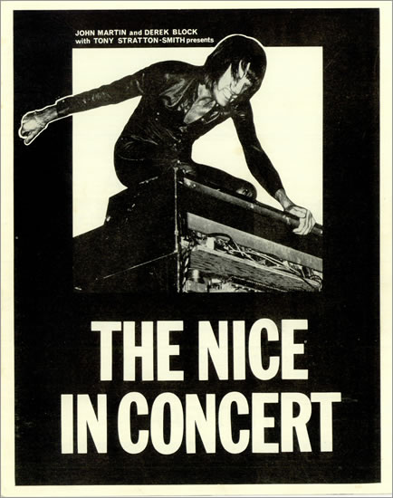 The Nice were virtuoso Keith Emerson: organ, Brian Davison: drums, and Lee Jackson: vocals, and bass. They had just released the album “Five Bridges Suite” and played the Suite in its entirety. The work was commissioned for the Newcastle Arts Festival in 1969, and refers to the city’s five bridges over the River Tyne. I recall Lee Jackson, himself a Geordie, making great play of the local aspects of the work. The album cover features a picture of the Tyne Bridge, and the five movements, which the Nice played that night are: Fantasia, Second Bridge, Chorale, High Level Fugue and Finale. I think they also played their moving interpretation of Tim Hardin’s “Hang onto a Dream”, “Rondo”, and “America”; the latter two songs being showcased for Emerson’s organ playing. Keith Emerson was sensational, pulling his Hammond organ about the stage, stabbing it with daggers, and generally being an amazing showman. The picture on the front of my programme, shown above, sort of sums it up. A great gig by two important and influential bands, which sticks in my mind to this day.